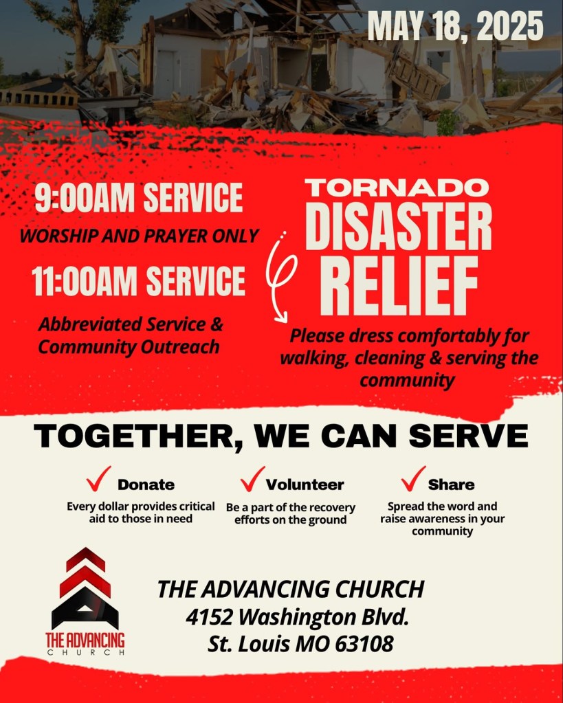 How ya bee? For all of my international friends, St. Louis, MO where I live is located in the midwest of the United States and on the east side of the state of Missouri. Yesterday on May 16, 2025 our city suffered a severe tornado. There is devastating damage to homes, businesses, churches and most importantly lives lost.